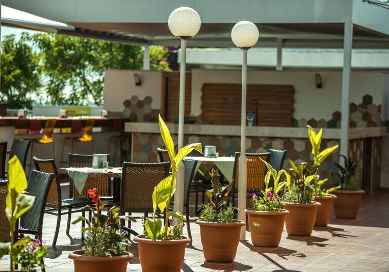- Terrassenblick: Hauptrestaurant mit Außensitzplätzen für luftige Mahlzeiten.