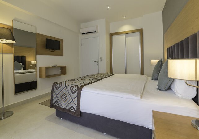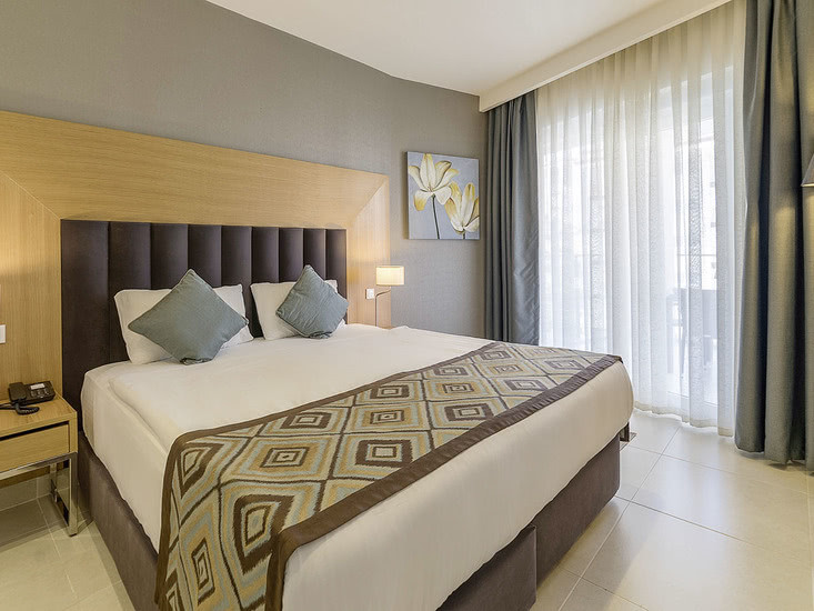 • Klimaanlage • Kühlschrank • Haartrockner • Kochnische • Sitzecke (je nach Zimmerkategorie) • Minibar (kostenfrei) • Safe (kostenfrei) • Kaffee-/Teezubereiter • Fernseher • WiFi (kostenfrei) • Balkon oder Terrasse • Schallisolation • Balkon (je nach Zimmerkategorie) • Meerblick (je nach Zimmerkategorie: seitlich) • Schlafsofa • Terrasse
