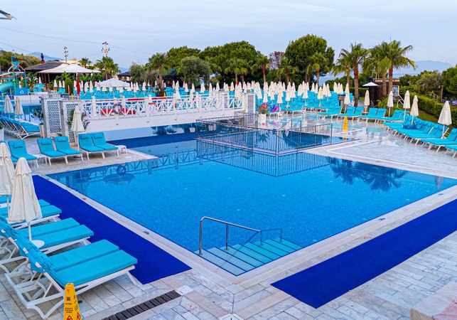 Ihr wohnt an der Gazibegendi Bulvarı in Kuşadası, Turkmen Mahallesi. Von hier erreicht Ihr den privaten Sand-/Kiesstrand bequem per Hotelshuttle – mit Liegen und Schirmen inklusive. Für Golfrunden liegt ein Platz rund 19 Kilometer entfernt, was Tagesausflüge planbar macht. Die Adresse ist gut angebunden und gleichzeitig praktisch, wenn Ihr zwischen Strandzeit, Pool und Ausflügen wechseln möchtet. Mit der Lage am Meer und der klar geregelten Strandlogistik bleibt Euer Tagesablauf übersichtlich. Highlight: Strandshuttle direkt vom Resort, strukturiert und ohne Zusatzkosten für Strandutensilien.