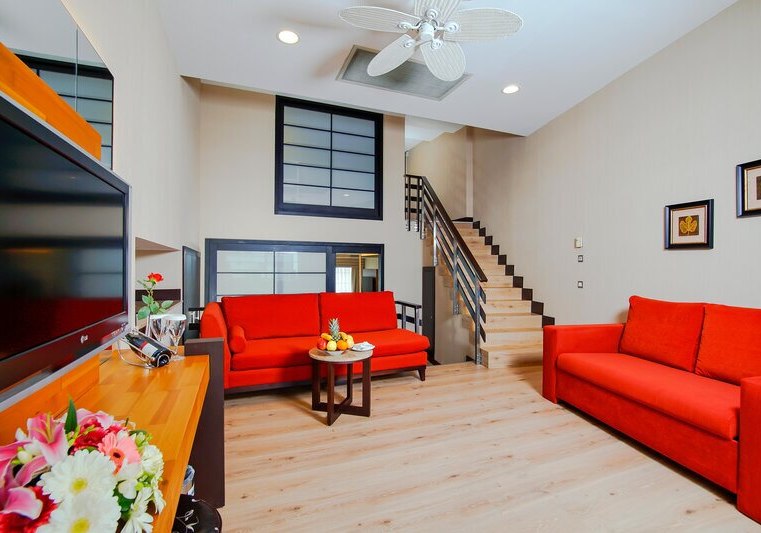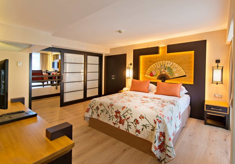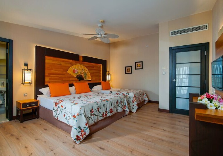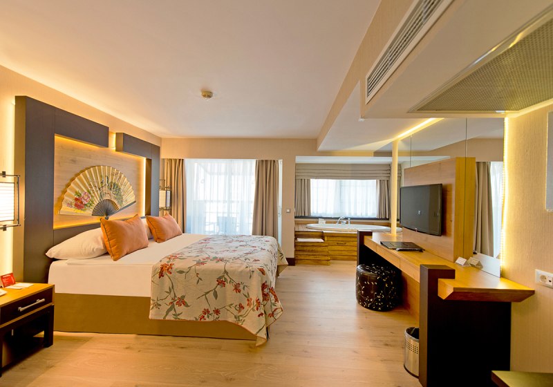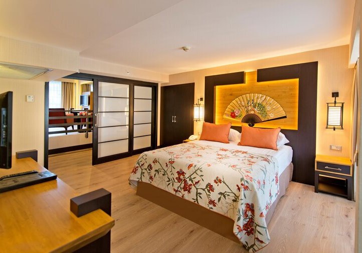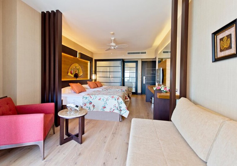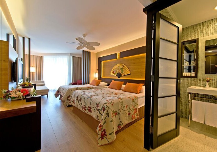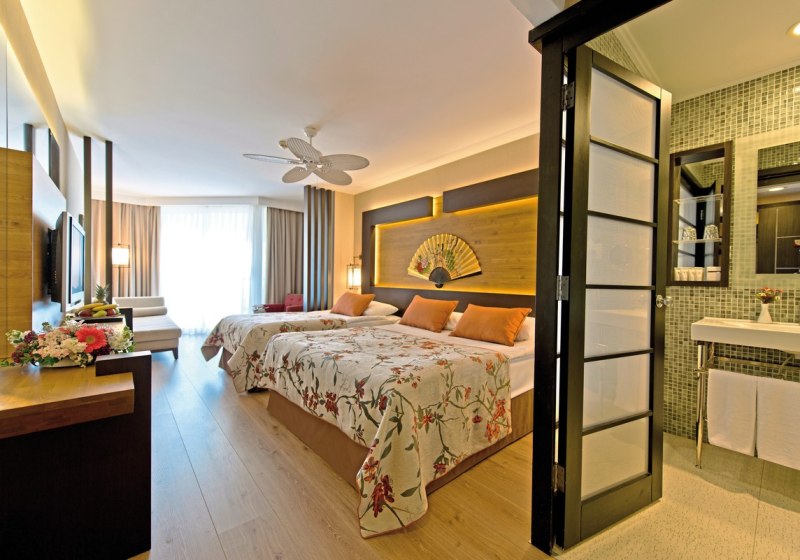 Für Familien stehen Varianten mit Whirlpool im Schlafzimmer, Maisonette-Familienteil und Verbindungslösungen bereit. Ausblicke reichen je nach Lage von Garten über Pool bis zum Meer. Verdunkelungsvorhänge, schallisolierte Einheiten und internationale Sender unterstützen erholsame Nächte im Urlaub.