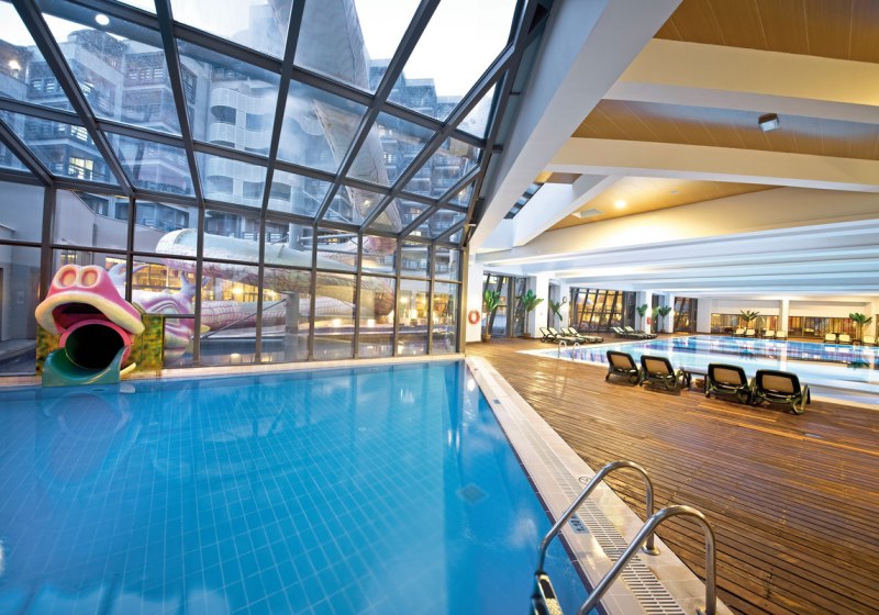 Limak Lara Deluxe Hotel & Resort verbindet direkte Strandlage von Lara mit großer Poollandschaft, klarer Infrastruktur und vielseitiger Küche. Dazu kommen Shows, Livemusik und Disco sowie ein Miniclub für 4–12 Jahre. Spa, Hallenbad und breite Sportauswahl runden den Rahmen ab.
