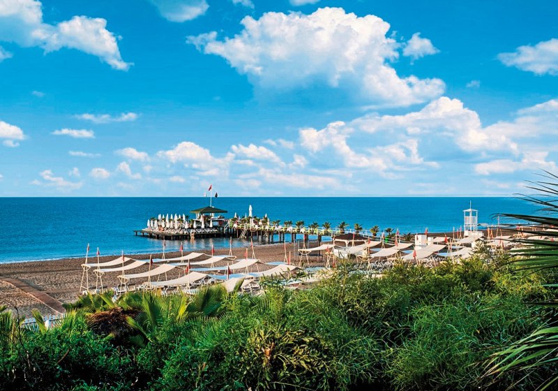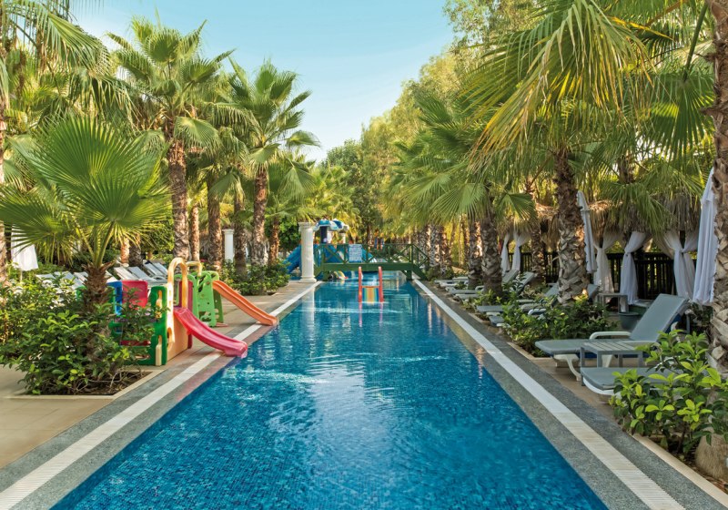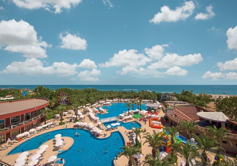 Delphin Palace steht für direkte Strandlage in Lara, eine weitläufige Wasserwelt und klare All‑inclusive‑Strukturen. Familienfreundliche Bereiche, Miniclub und Lunapark treffen auf Abendshows und gelegentliche Livemusik – mit kurzen Wegen zwischen Pool, Strand und Bühne.