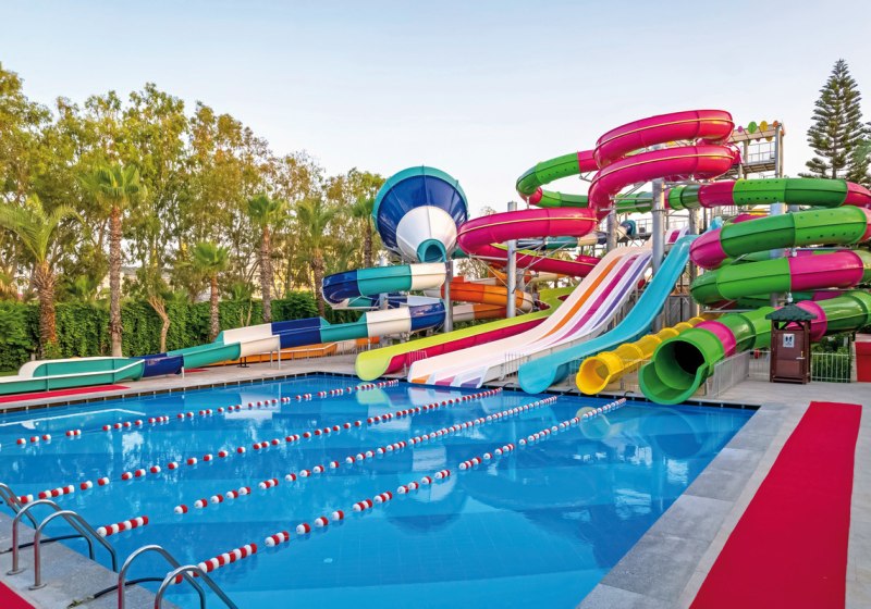 - Wasseraction: Aquapark mit Rutschen als dynamischer Trainingskick.