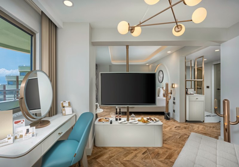 Im Delphin Palace trefft Ihr auf ein Resort, das lebendige Ferienfreude mit klarer Struktur verbindet. Die weitläufige Poollandschaft, direkte Strandlage und der große Aquapark prägen den Tag, während Lobby, Bars und Amphitheater den Abend rahmen. Familien, Strandliebhaber und Aktivfans finden hier verlässliche Abwechslung mit unkomplizierten Wegen.