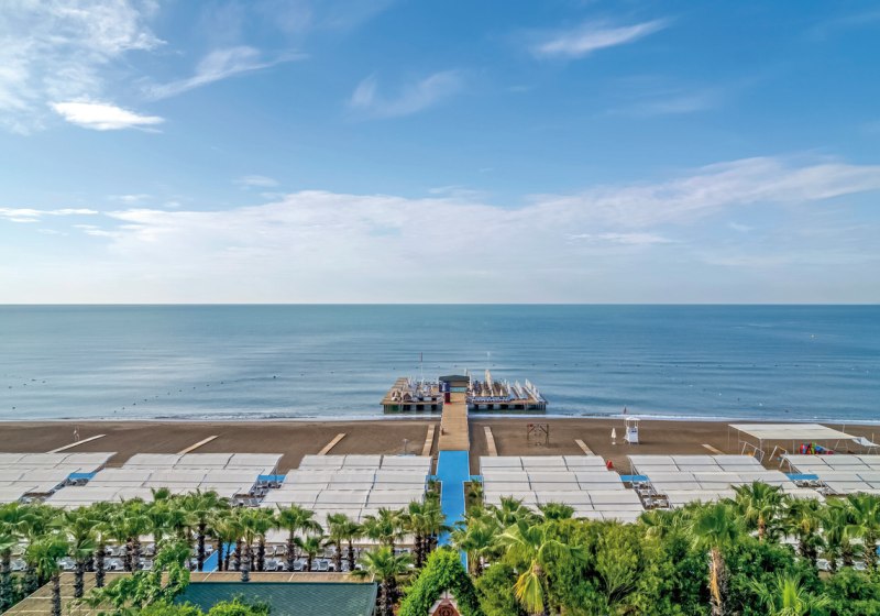Die Atmosphäre wirkt organisiert, freundlich und wohltuend unkompliziert: kurze Distanzen, viele Sitzbereiche, ein durchdachtes Gastro-Angebot und WLAN in Lobby und Zimmern. Zwischen Miniclub, Lunapark und Abendshows bleibt Raum für ruhige Momente am Meer. Highlight: Direkte Strandlage mit großem Aquapark und abwechslungsreichem Entertainment.