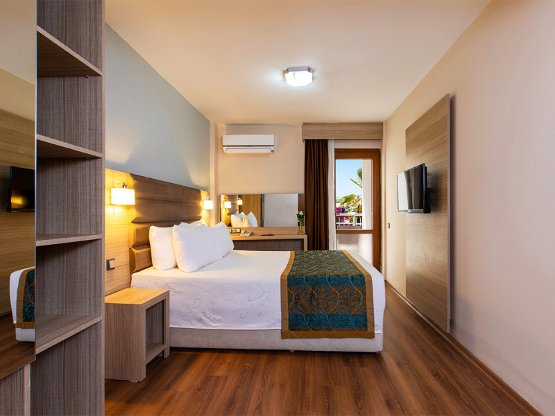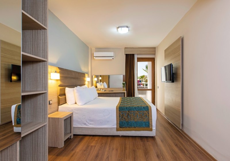 Ihr wohnt in Doppelzimmern ab etwa 20 m² mit Balkon, Keramik- oder Laminatboden, individuell regulierbarer Klimaanlage, LCD-Sat-TV, Direktwahltelefon und Minibar. Dusche/WC und Föhn sind Standard. Je nach Präferenz schlaft Ihr im Doppelbett oder in getrennten Betten. Superior-Zimmer liegen im Erdgeschoss.