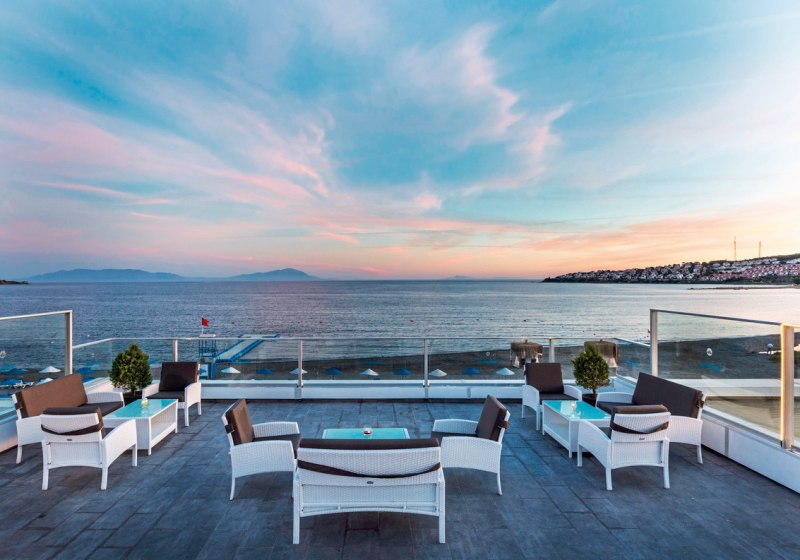 Entfernungen• Bar/Pub (Wegzeit (Pkw, Bus), Wegzeit (zu Fuß), Lobby bar) • Busbahnhof (35, 20, direkt, ca. 5km entfernt, 1, Seferhisar) • Stadtzentrum (direkt, 35, 20, ca. 5km entfernt, 1) • ÖPNV (5, in der Nähe) • Restaurant (Wegzeit (zu Fuß), Wegzeit (Pkw, Bus), Wegzeit (ÖPNV), Flavours) • Meer (Wegzeit (zu Fuß), na, na, in der Nähe, ca. 10m entfernt) • Bahnhof (na, 75, 180, im Ort, ca. 60km entfernt, izmir) • Bushaltestelle (im Ort) • Jachthafen (Wegzeit (zu Fuß)) • Krankenhaus (35, 20, 60, in der Nähe, ca. 5km entfernt) • Apotheke (35, 20, 60, in der Nähe, ca. 5km entfernt)