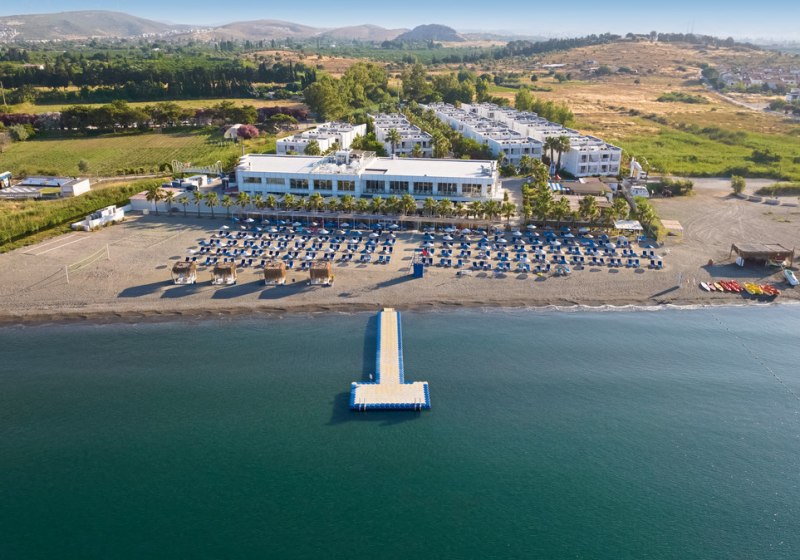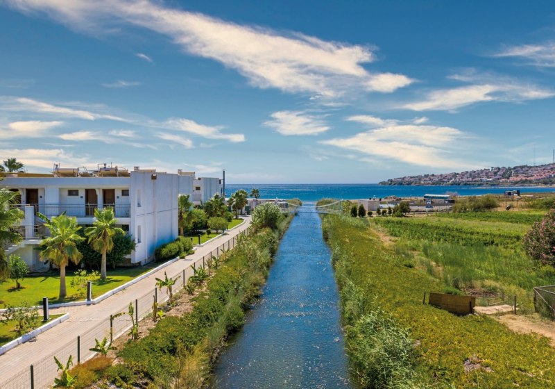 Die Halbinsel-Lage des Labranda Lebedos Princess führt Euch direkt an den Sandstrand einer hoteleigenen Bucht. Das Meer beginnt nur wenige Schritte entfernt. Die Umgebung ist ruhig und ländlich, mit viel Grün und freien Blickachsen. In der Nähe verkehren öffentliche Minibusse, sodass Ihr flexibel bleibt, ohne auf ein eigenes Auto angewiesen zu sein.
