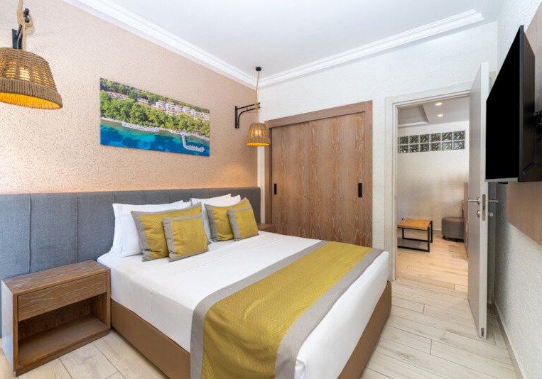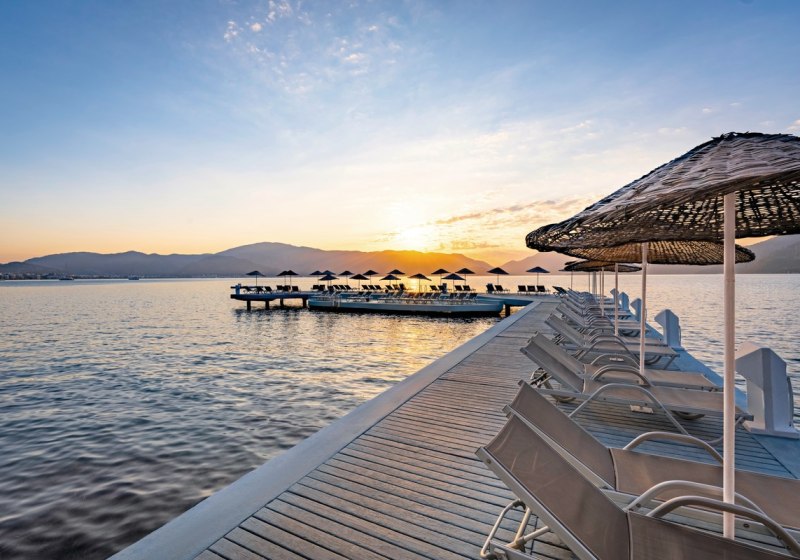 Labranda Mares Marmaris verbindet Privatstrand, lebendiges Abendprogramm und durchdachte Infrastruktur von der Lobby bis zum Spa. Die Lage wirkt ruhig und zugleich optimal angebunden, mit Hafen, Bushaltestelle und Stadtzentrum in greifbarer Nähe. All-Inclusive, sechs Bars und klare Servicezeiten erleichtern Eure Tagesplanung.