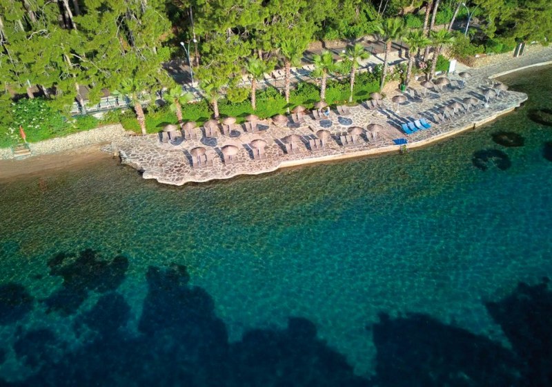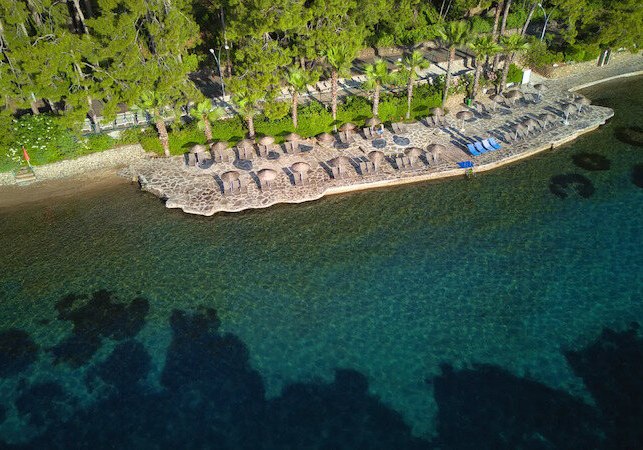 Die Lage ist klar definiert: Privatstrand mit Sand- und Kiesbereich direkt vor der Türe, Strandbar inklusive. Der Hafen beziehungsweise Yachthafen ist weniger als 50 Meter entfernt, die Bushaltestelle liegt in rund 100 Metern Distanz. Das Stadtzentrum erreicht Ihr in unter fünf Kilometern; Restaurants und Einkaufsmöglichkeiten befinden sich etwa einen Kilometer entfernt, ein Park (Milli Park) liegt in rund zwei Kilometern Distanz.