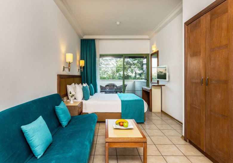 Ihr wohnt in Zimmern oder Bungalows mit funktionaler Ausstattung: Klimaanlage, Heizung, Safe und Minibar treffen auf WiFi, Telefon und Fernseher. Kaffee- und Teezubereiter, Wasserkocher sowie Schreibtisch erhöhen den Komfort, Haartrockner, Hausschuhe und eine Dusche runden das Bad ab. Balkon oder Terrasse öffnet den Blick je nach Kategorie in den Garten oder über die Bucht.