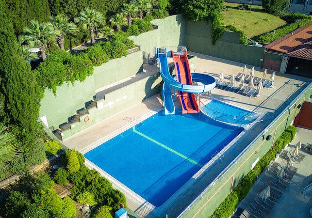 - Poolplus: Außenpool mit Wasserrutsche und bereitgestellten Badetüchern.