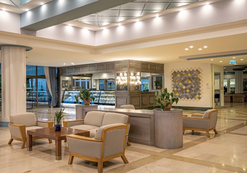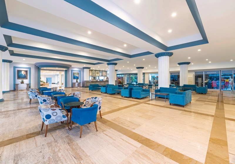 Die öffentlichen Bereiche sind breit aufgestellt: Lobby mit 24-Stunden-Rezeption und WLAN, Aufzug, Konferenzraum und Businesscenter. Einkauf und Servicewege sind kurz dank Supermarkt, Souvenir-Shop und Friseur; eine ärztliche Sprechstunde ist im Haus. Außen warten Gartenanlage, Liegewiese, Sonnenterrasse und ein Pool mit Wasserrutsche, Liegen, Schirmen und Badetüchern an Pool und Strand.