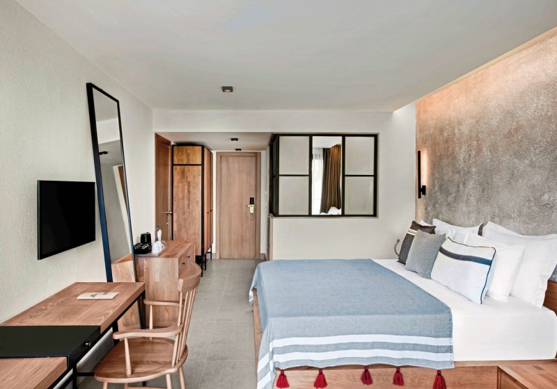 Bei den Kategorien wählt Ihr zwischen Bungalowzimmern, Familienzimmern mit Verbindungstür (je nach Typ mit zwei Schlafzimmern und teils zwei Bädern) sowie Familienzimmern im Bungalowbereich, teils mit Meerblick. Juniorsuiten bieten Schlafzimmer und Wohnbereich mit seitlichem Meerblick. Auf Anfrage sind Babybetten erhältlich. Highlight: Familien profitieren von Verbindungstüren und teils doppelten Bädern.