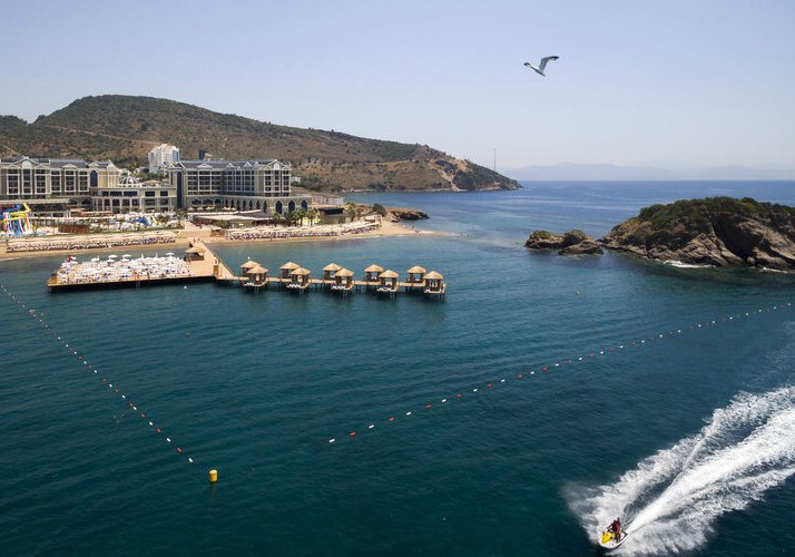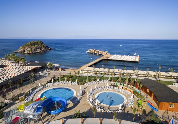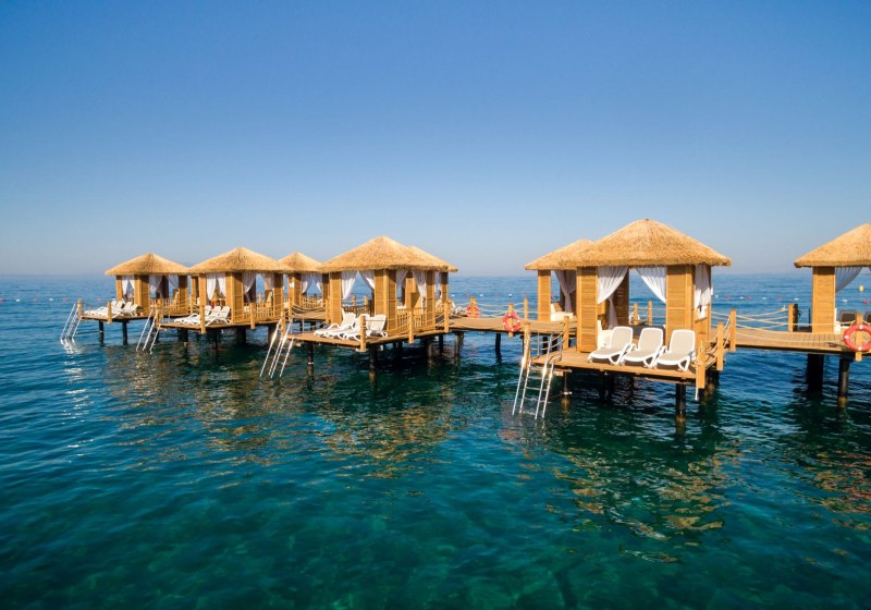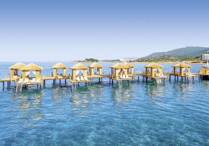 Im Sunis Efes Royal Palace Resort & Spa wohnt Ihr direkt am Sand- und Kiesstrand von Özdere. Die weitläufige Anlage mit Garten, Sonnenterrassen und eigenem Badesteg wirkt wie ein kleiner Küstenort: Wege, Wasserflächen und Rückzugsplätze sind klar strukturiert. Familien, Paare und Freundesgruppen finden viel Raum, um gemeinsam aktiv zu sein – oder sich entspannt zu verteilen.