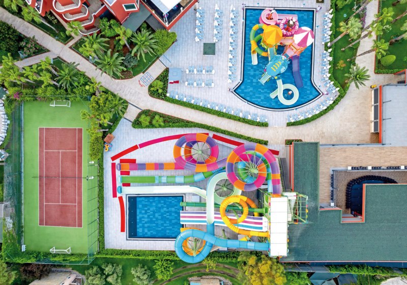 - Rutschenwelten: Getrennte Aquaparks für Kinder und Erwachsene sorgen für Tempo.