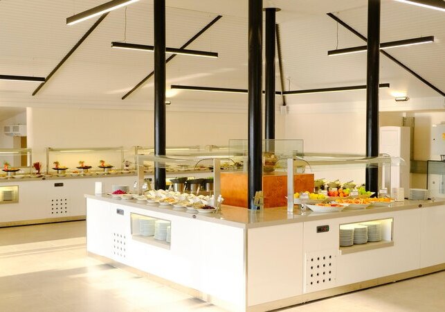 Ihr startet im Hauptrestaurant mit Terrasse und Buffetauswahl; mittags sind 12:30–14:00 Uhr angegeben. Ergänzt wird das Angebot durch ein À‑la‑carte‑Restaurant und mehrere Bars, darunter Lobbybar sowie Poolbar/Snackrestaurant. Kindermenüs und ein Kinderrestaurant erleichtern Familien die Planung. Highlight: Breite Verpflegungspalette von Frühstück bis Snacks mit inkludierten Getränken 09:00–23:00 Uhr.