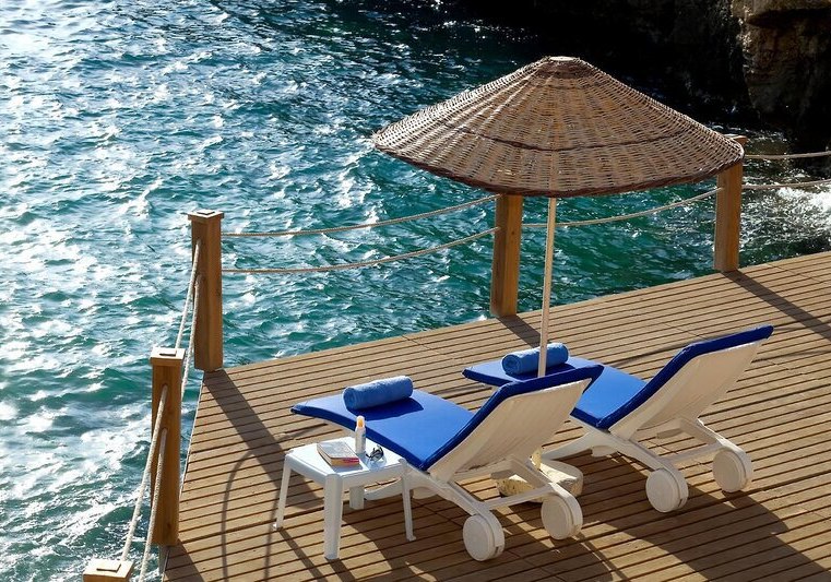 • Plattformen: Zwei Badeplateaus ergänzen den direkten Strandzugang.