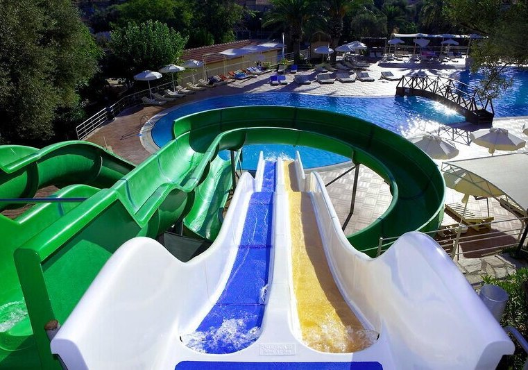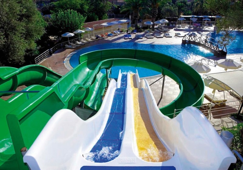 • Rutschenmix: Süßwasserpool mit drei Wasserrutschen plus separatem Relaxpool.