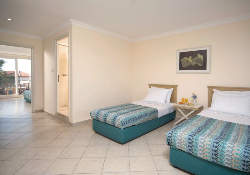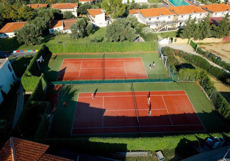 Die Infrastruktur ist auf vielseitige Tage ausgelegt: 428 Zimmer, mehrere Bars, ein Hauptrestaurant mit Terrasse, À-la-carte-Option, ein Kinderrestaurant und ein Snackbereich an der Poolbar. Für Familien stehen Miniclub, Spielplatz und Kinderbecken bereit; Aktive nutzen Tennisplätze, Beachvolleyball oder den Fitnessraum. Abends führen Amphitheater, Open-Air-Diskothek und Live-Musik durch den Tag. Highlight: Direkte Strandlage mit Badeplateaus und Meerwasserpool für kurze Wege zwischen Sonnenplatz und Wasser.