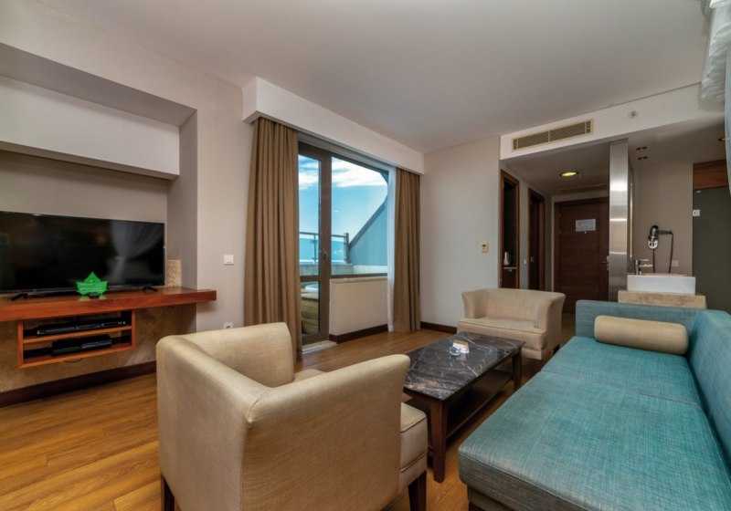 • Klimaanlage • Balkon (je nach Zimmerkategorie) • Haartrockner • Sitzecke (je nach Zimmerkategorie) • Minibar (kostenfrei) • Safe (kostenfrei) • Meerblick (je nach Zimmerkategorie) • Kaffee-/Teezubereiter • Terrasse • Fernseher • Spielkonsole • rollstuhlgerechte Zimmer (auf Anfrage) • WiFi (kostenfrei)