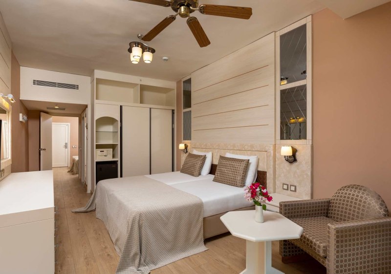 Für Familien bieten sich Einheiten mit separatem Schlafzimmer und Verbindungstür an. So teilt Ihr Raum, ohne auf Rückzug zu verzichten. Die schlüssige Zimmerausstattung ergänzt das Gesamtpaket aus Strandlage, Poolbereichen und Gastronomie. Ihr entscheidet, ob Ihr den Tag auf dem Balkon ausklingen lasst oder den Schritt zur Bar wählt – die Wege bleiben kurz, der Ablauf bleibt übersichtlich.