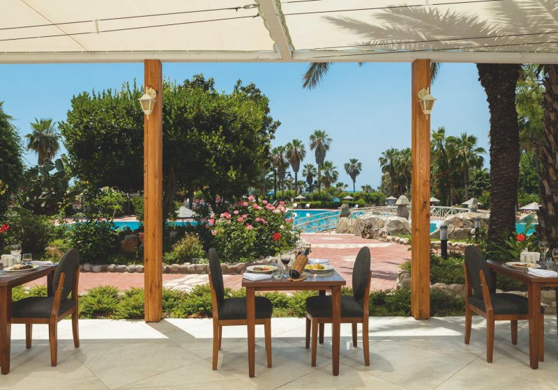 Defne Garden verbindet direkte Strandlage, vielseitige Pools mit vier Rutschen, Tennis auf Sand und ein klares Gastronomiekonzept. Ihr bleibt dank WLAN fast überall verbunden und gestaltet Eure Tage zwischen Meer, Garten und Terrasse flexibel.