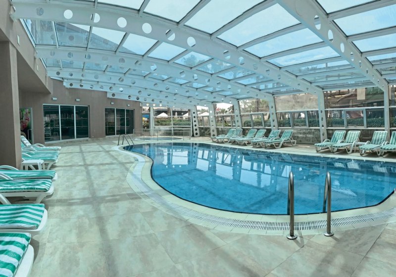 Im Side Lilyum Hotel & Spa erwartet Euch ein lebendiges Strandresort mit klarer Struktur und kurzen Wegen. Ihr bewegt Euch zwischen großzügigem Außenbereich mit Süßwasserpool, Rutschen und Sonnenterrasse sowie einer entspannten Lobby mit Bar und kleinen Shops. Die Atmosphäre wirkt familienfreundlich und unkompliziert, mit vielen Services, die Euren Tagesrhythmus angenehm fließend halten.