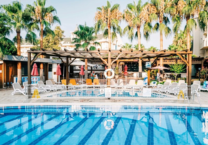 Das Hotel liegt in Evrenseki, rund 400 Meter vom Sandstrand entfernt. Ein regelmäßiger Shuttle erleichtert Euch den Weg, Liegen, Auflagen und Schirme sind am Strand inklusive. Bis ins Ortszentrum sind es etwa 1 Kilometer, nach Side rund 7 Kilometer und nach Manavgat etwa 15 Kilometer. Der Flughafen Antalya liegt ungefähr 65 Kilometer entfernt.