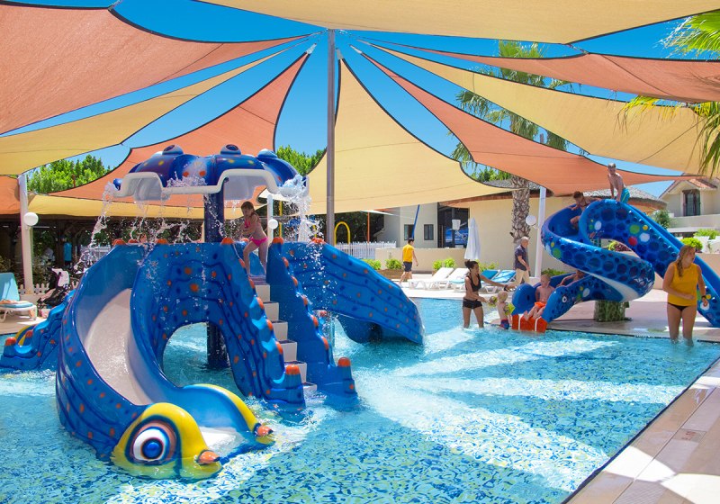 Die Infrastruktur ist breit aufgestellt: WLAN in der gesamten Anlage, mehrere Außenpools und ein Hallenbad, Fitnessraum, Theatersaal und großzügige Loungeflächen. Garten, Liegewiese, Sonnenterrasse und Außenmöbel strukturieren Eure Ruhezonen. Liegestühle, Sonnenschirme und Badetücher sind organisiert verfügbar. Der Wasserpark mit fünf Rutschen setzt einen klaren Freizeitfokus.