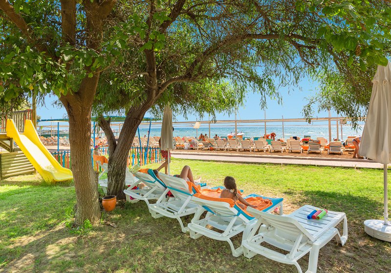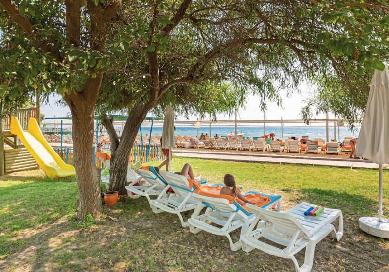 - Eigener Strand: Hotelstrand mit Liegen, Schirmen und Strandbar in kurzer Distanz.