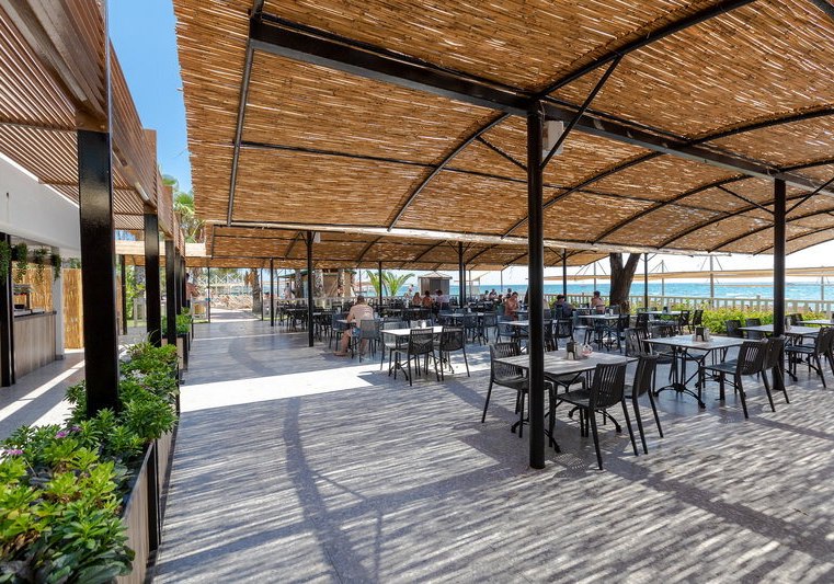 In nur 200 Metern erreicht Ihr Bars, Restaurants, Einkaufsmöglichkeiten und einen Club. Eine Bushaltestelle liegt ebenfalls 200 Meter entfernt, mit etwa einer Minute Fahrzeit oder fünf Minuten zu Fuß. Am Strand warten Liegestühle, Sonnenschirme und eine Strandbar. So kombiniert Ihr schnelle Wege mit klarer Struktur: kurze Distanzen zu Treffpunkten, einfache Anbindung und ein Strandabschnitt, der dem Hotel zugeordnet ist.