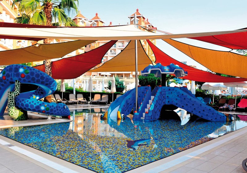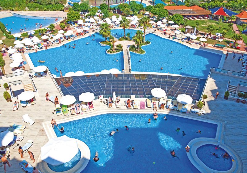 Im Side Mare Resort & SPA erwartet Euch ein lebhaftes Resort mit klarer Ausrichtung auf Strandtage, Wasserspaß und komfortable Erholung. Die weitläufigen Außenbereiche mit mehreren Pools und einem Wasserpark mit fünf Rutschen schaffen eine dynamische Bühne für Eure gemeinsamen Stunden. Familien, Strandurlauber und Aktive finden hier Struktur und Abwechslung: vom Miniclub bis zur Abendunterhaltung, von ruhigen Gartenbereichen bis zur Lounge mit Platz für gesellige Stunden.
