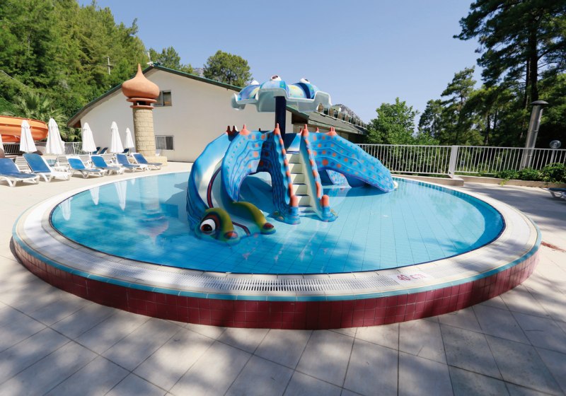• Liegestühle • Außenpool • Sonnenschirme • Poolbar • Sonnenterrasse • Wasserrutsche • Wasserpark • Pool