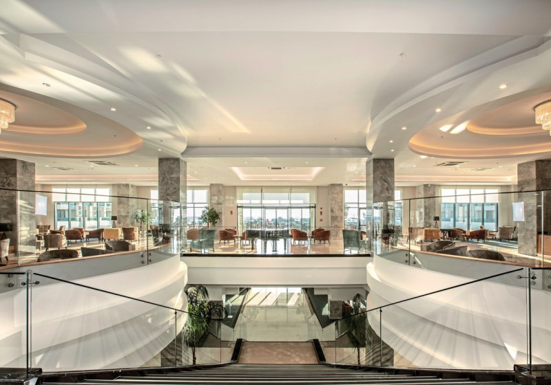 Die öffentlichen Bereiche wirken modern und funktional: WLAN im gesamten Resort inklusive, eine großzügige Süßwasser-Poollandschaft, Hallenbad, Game-Hall und ein Theatersaal. Für Business-Momente stehen Business-Center sowie Konferenz- und Bankettsäle bereit. Am Strand erwarten Euch inklusive Liegen, Sonnenschirme und Badetücher – dazu Strandbar und Pavillons. Kulinarisch wählt Ihr zwischen Buffet mit Terrasse, À-la-carte, Bars, Snack Bar und Patisserie. Highlight: Direkte Strandlage mit flach abfallendem Sand – komfortabler Zugang zum Meer.