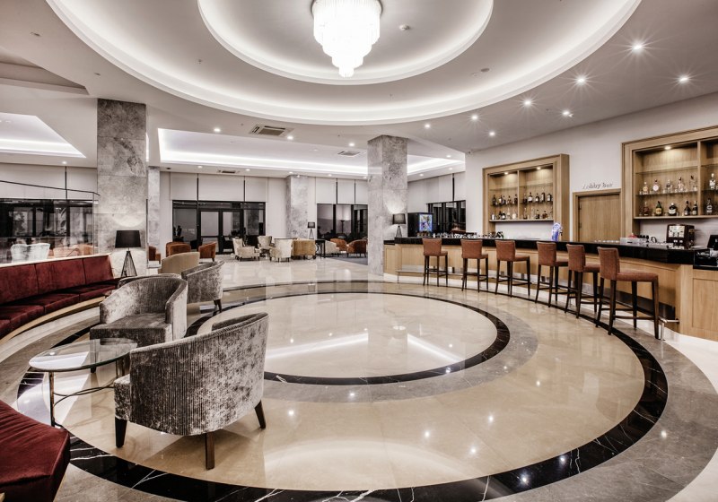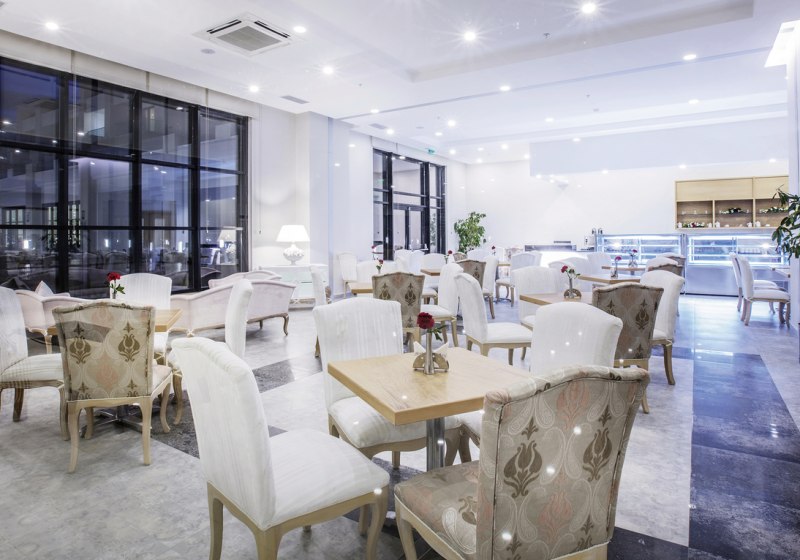 Für produktive Stunden: Business-Center, fünf Konferenz- und Bankettsäle, Coworking-Space sowie Technik von Beamer bis Projektor. Eine Game-Hall, Bibliothek, Theatersaal und ein Wasserbereich mit Rutschen runden das Angebot ab. Öffentliche Minibusse verbinden Euch bequem mit Kusadasi. Highlight: Umfassende Infrastruktur – Erholung, Shopping und Arbeiten an einem Ort.