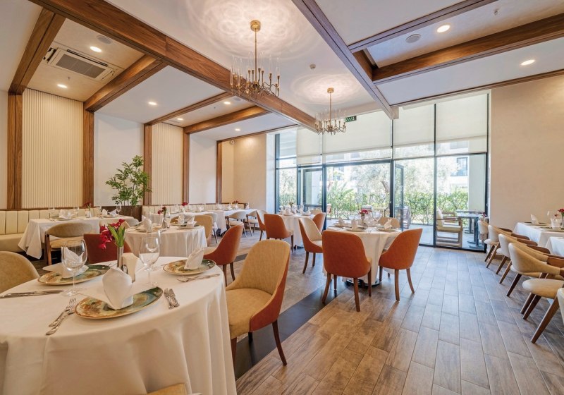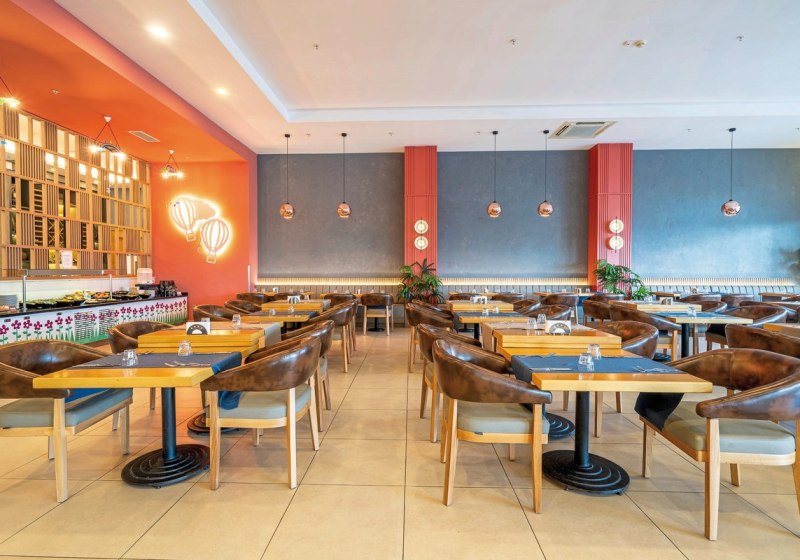 - Buffet & Live: Buffet mit Terrasse und Live-Kochen für frische Auswahl.
