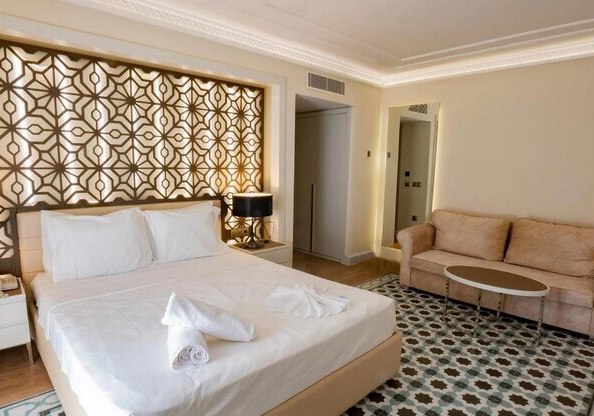 Das Herz des Hauses schlägt gesellig: Kinder sausen zwischen Miniclub, Spielplatz, Lunapark und dem Kinderpool mit Rutschen, während Ihr Euch am Poolbereich oder an der Strandlinie einen Platz unter Schirmen sichert. Kulinarisch führt der Weg über das Hauptrestaurant mit Terrasse zu zwei À-la-carte-Optionen und einer Patisserie für feine Pausen. WLAN ist im gesamten Areal verfügbar, der Service reicht von Babysitting bis medizinischer Betreuung. So entsteht ein Urlaubstag im Urlaub, der sich vom ersten Frühstück bis zur späten Lobbybar-Stunde mühelos anfühlt.