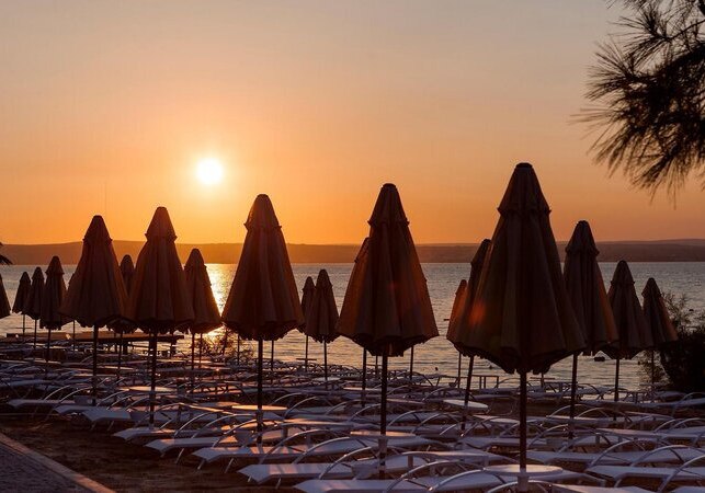 Im Long Beach Club Nature trefft Ihr auf ein weitläufiges Feriendorf, das Familien und aktive Reisende mit klarer Struktur, viel Platz und direkten Strandmomenten abholt. Auf rund 35.000 Quadratmetern verteilen sich niedrige Villen mit zwei bis drei Etagen, Wege durch begrünte Bereiche und offene Zonen für Spiel, Sport und Begegnung. Der private Sand-/Kiesstrand liegt direkt vor Euch, breit genug für ausgedehnte Stunden am Wasser. Tagsüber belebt Animation den Rhythmus, am Abend übernehmen Livemusik und Shows die Bühne, während Ihr auf Terrassen entspannt den Blick schweifen lasst.
