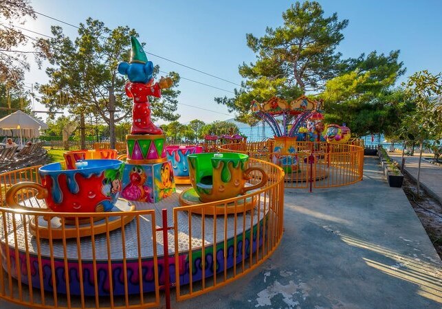 Unterhaltung trägt hier durch den Tag: Ein Animationsprogramm sorgt für Bewegung und kleine Wettbewerbe, ohne den Strandtag zu überlagern. Kinder finden im Miniclub, bei organisierten Kinderspielen und im Lunapark reichlich Bühne für Energie. Am frühen Abend gehört die Minidisco den Kleinen, bevor der Takt wechselt und Ihr Euch auf die Shows vorbereitet.