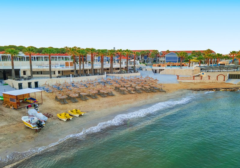 Lucas Didim steht für direkte Strandlage in Didim, kurze Wege und ein vollständiges Programm aus Gastronomie, Entertainment, Wellness und Sport. Zwei Pools – einer mit Rutschen – und ein hoteleigener Strandabschnitt prägen Euren Tagesablauf mit klaren Optionen zwischen Aktivität und Ruhe.