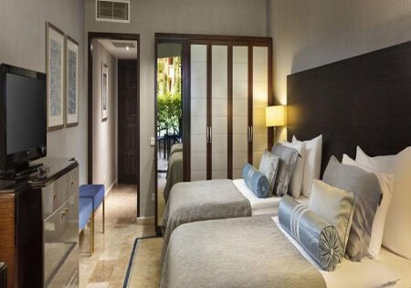 Die 551 Zimmer verteilen sich auf 30 drei- bis vierstöckige Gebäude und bieten Balkon oder Terrasse. Zur Ausstattung zählen Dusche, WC, Föhn, Kosmetikspiegel, LCD-Sat-TV, Minibar, Safe und eine zentrale, stundenweise gesteuerte Klimaanlage. Der Marmorfußboden mit Teppich am Bett setzt einen klaren Akzent, der zugleich pflegeleicht und angenehm wirkt.