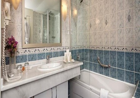 - Klar ausgestattet: Dusche, LCD-Sat-TV, Safe und Minibar für strukturierte Aufenthalte.
