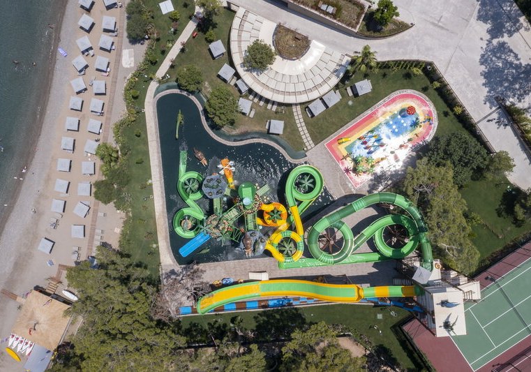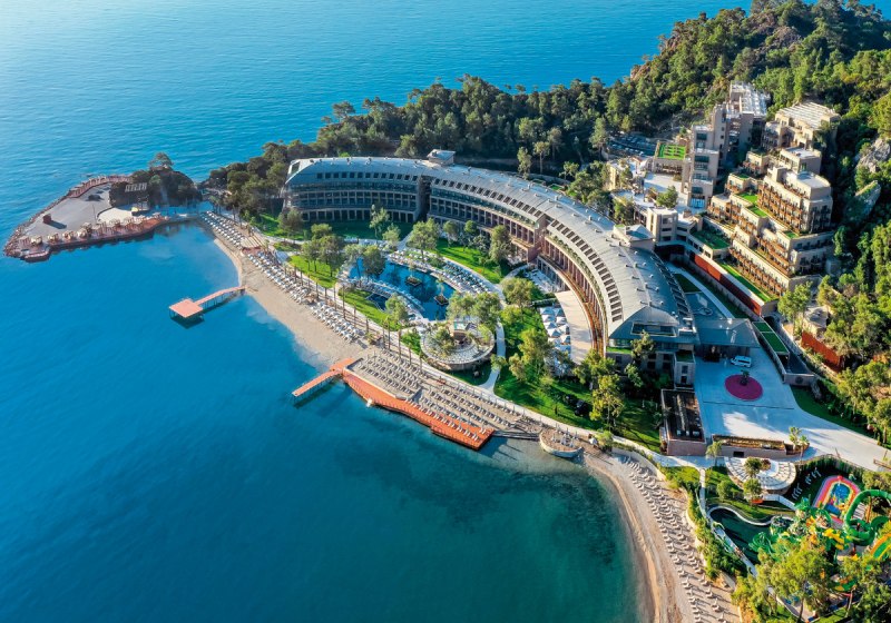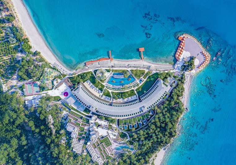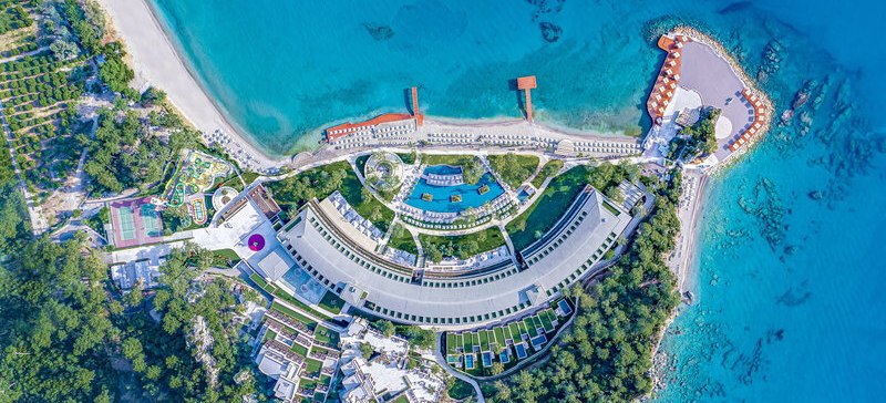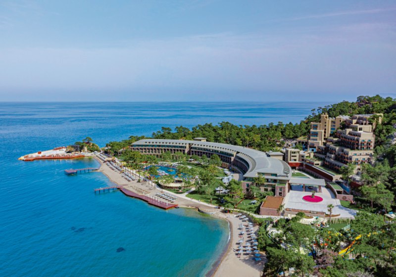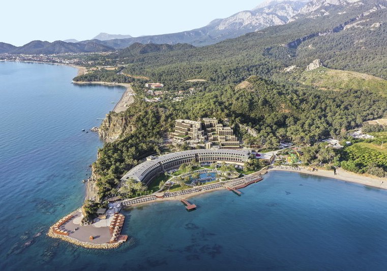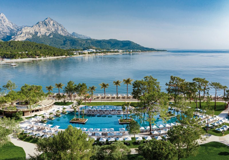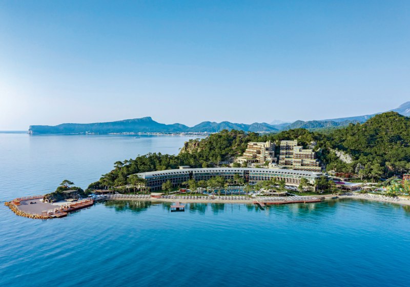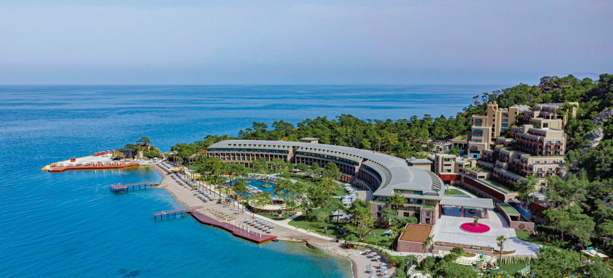 Die Anlage liegt nahe Kemer, rund 5 Kilometer vom Ort und etwa 45 Kilometer von Antalya entfernt. Der eigene, 550 Meter lange Sand-/Kiesstrand mit zwei Buchten strukturiert Euren Strandtag und sorgt für kurze Wege zwischen Wasser, Liegen und Bars. Ihr bewegt Euch damit in einer Region, die Badeurlaub mit entspannten Ausflügen nach Kemer verknüpft, während Antalya als größere Adresse für Kultur und Shopping in erreichbarer Distanz bleibt. Highlight: Euer Strandzugang ist privat, weitläufig und klar gegliedert.