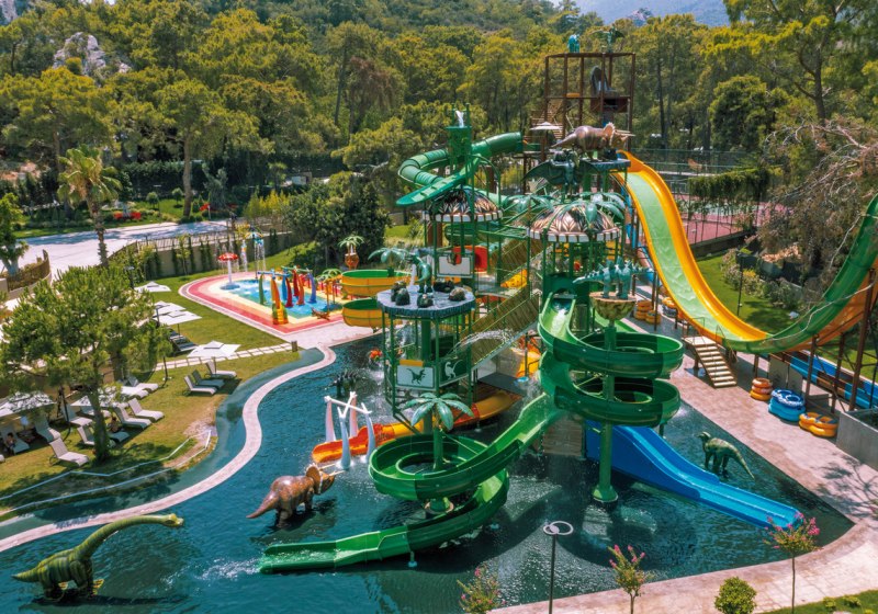 - Wasserwelten: Poollandschaft mit Rutschen und separatem Erwachsenenpool.