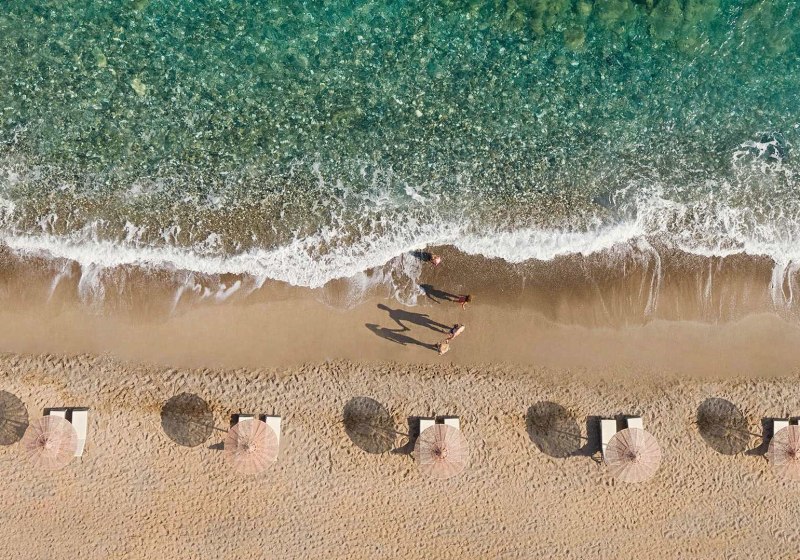 - Strandlage: 550 Meter Küste mit zwei geschützten Buchten bieten Struktur.