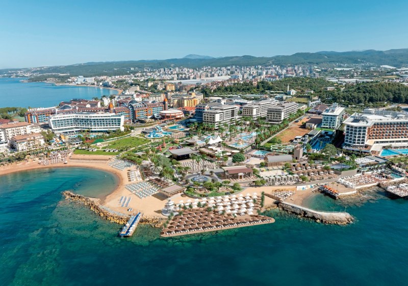 Numa Bay Exclusive Hotel verbindet die direkte Sandstrandlage von Incekum-Avsallar mit einer klaren Struktur aus Pools, Rutschen und Ruhezonen. Dazu kommen All-Inclusive Plus, Terrasse mit Live-Kochen, À-la-carte-Optionen und Bars für den Abend. Familien profitieren vom Miniclub, Paare vom Erwachsenenpool und dem unaufgeregten Spa.