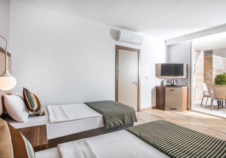 Zimmer• Klimaanlage • Haartrockner • Telefon (gegen Gebühr) • Safe (kostenfrei) • Meerblick (je nach Zimmerkategorie: seitlich) • Fernseher • WiFi (kostenfrei) • Gartenblick (seitlich) • Poolblick (seitlich, je nach gebuchter Leistung) • Strandblick (seitlich, je nach gebuchter Leistung) • Gemeinschaftsterrasse (je nach gebuchter Leistung) • Etagenbett (je nach gebuchter Leistung) • Pool (privat) (mit Außenbereich, kostenfrei) • Steckdose • Holz/Parkett • Balkon (je nach Zimmerkategorie) • Minibar (kostenfrei) • Kaffee-/Teezubereiter • Terrasse