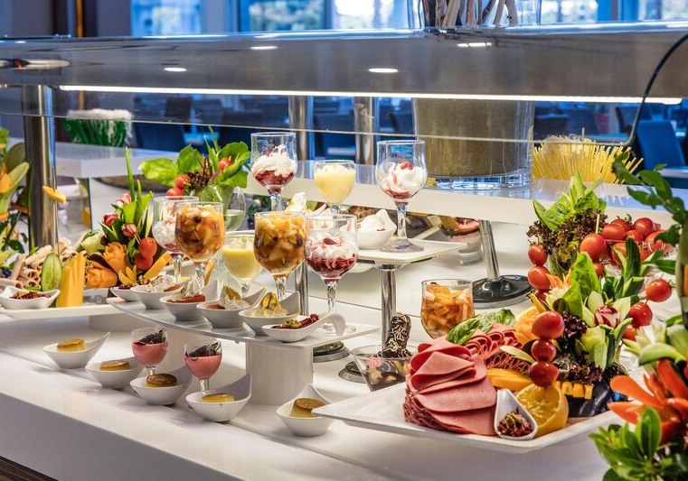 CITRUS Lobby Bar und die Strand-Snack Bar (10–24 Uhr) strukturieren den Tag, während die HERA Patisserie und das gleichnamige Café rund um die Uhr verfügbar sind. Ein Eiscafé ergänzt das Angebot saisonal tagsüber. Bewertungen zum Essen sind durchweg Hervorragend.