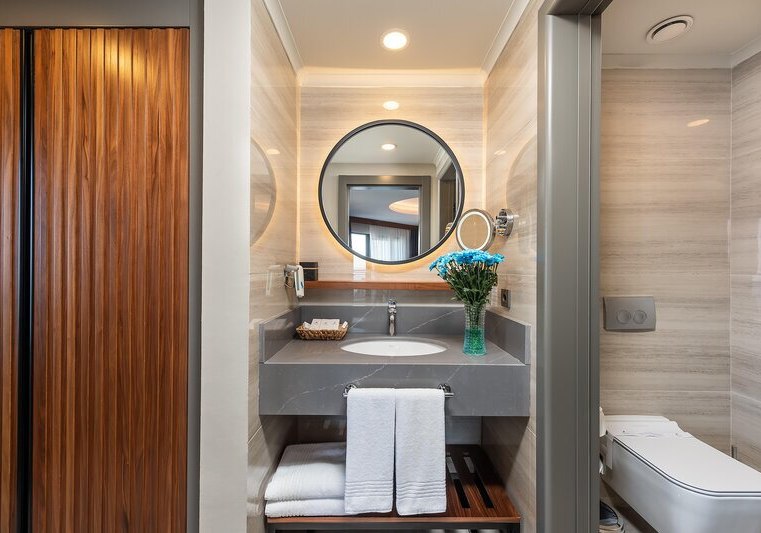 - Erholungsbereich: Hamam, Sauna und Dampfbad ergänzen das Spa mit klarer Ausrichtung.